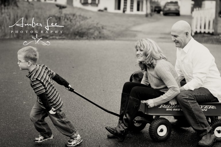 Love the image of him pulling his parents in the wagon. And I always love seeing pets involved in a session :)! Super cute family!