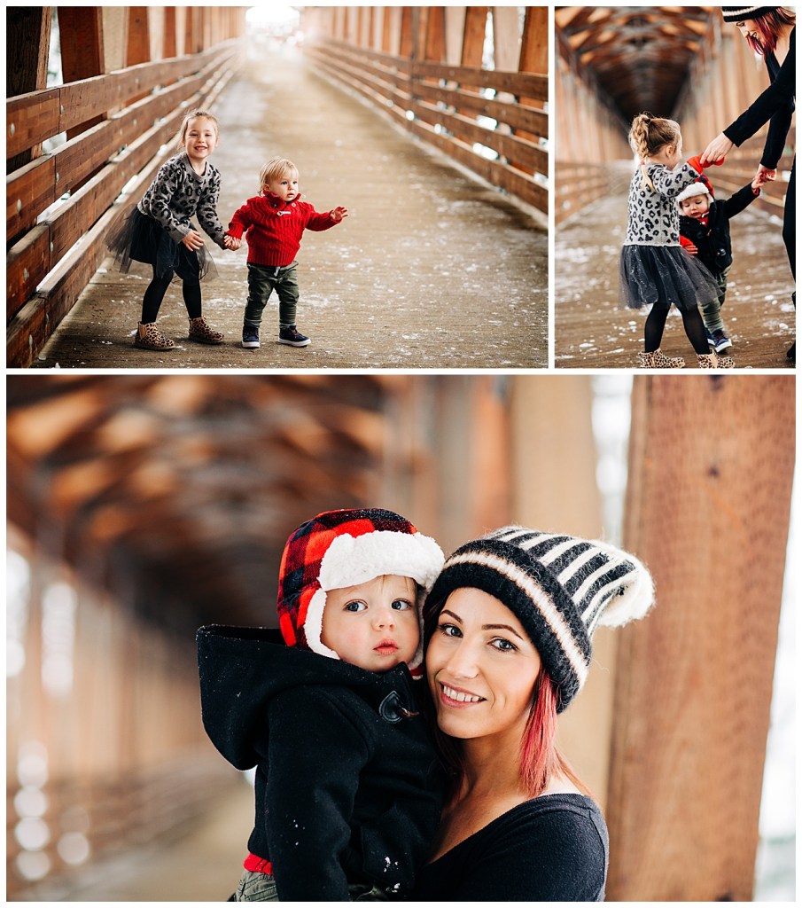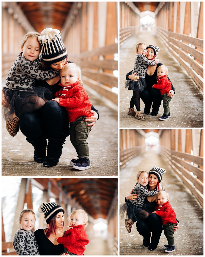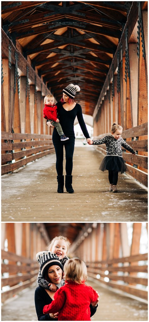We took an adventure for this session. As you can see the undercover bridge is worth the drive and that snow. It was just a joy. Perfectly diffused light that day. I loved everything about this. There is something about watching families interact. Showing our littles what we did as a child and seeing their eyes light up. The hugs and the kisses and the laughter. It warms my whole soul.