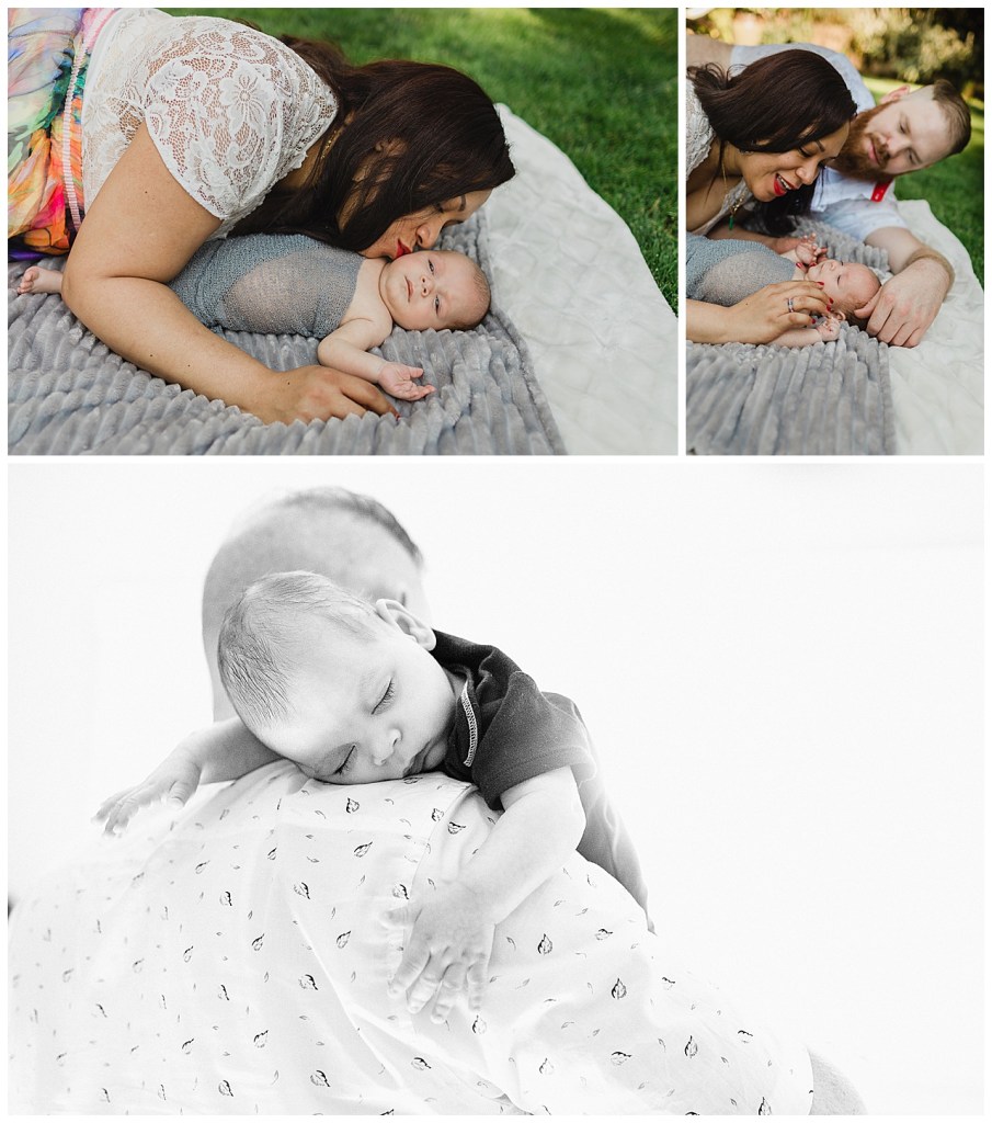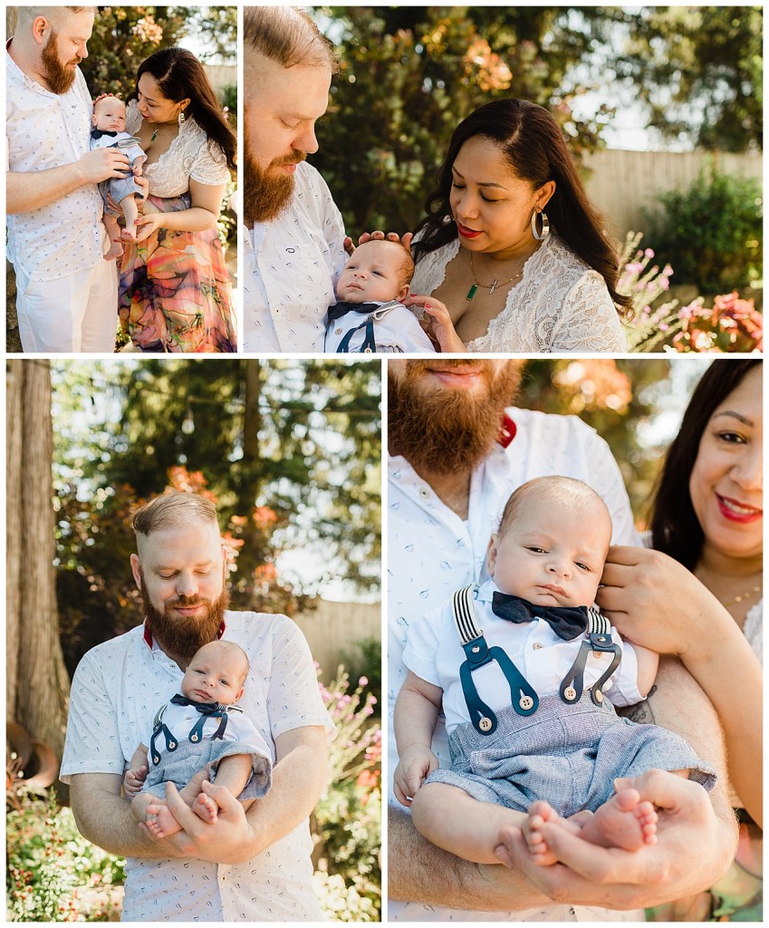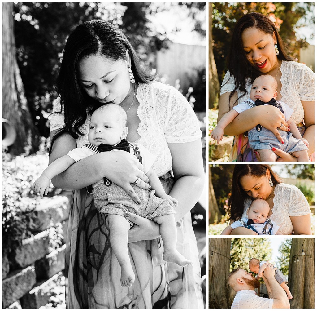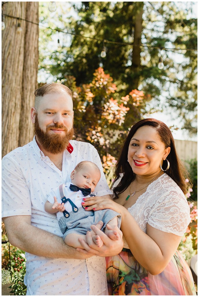It so happens that while I was in the hospital so was this mama. So we miss her maternity session. But we finally got to meet and see this adorable family of hers. She trekked over to my place from Ballard. Her sweet babe decided to arrive several weeks early. So he’s about 10 weeks here. I love his bright eyes and adorable expressions. Of course his parents are obsessed as they should be. It was way too hot to be indoors so Most of this was shot in my backyard. Thank goodness for the nice breeze we had.