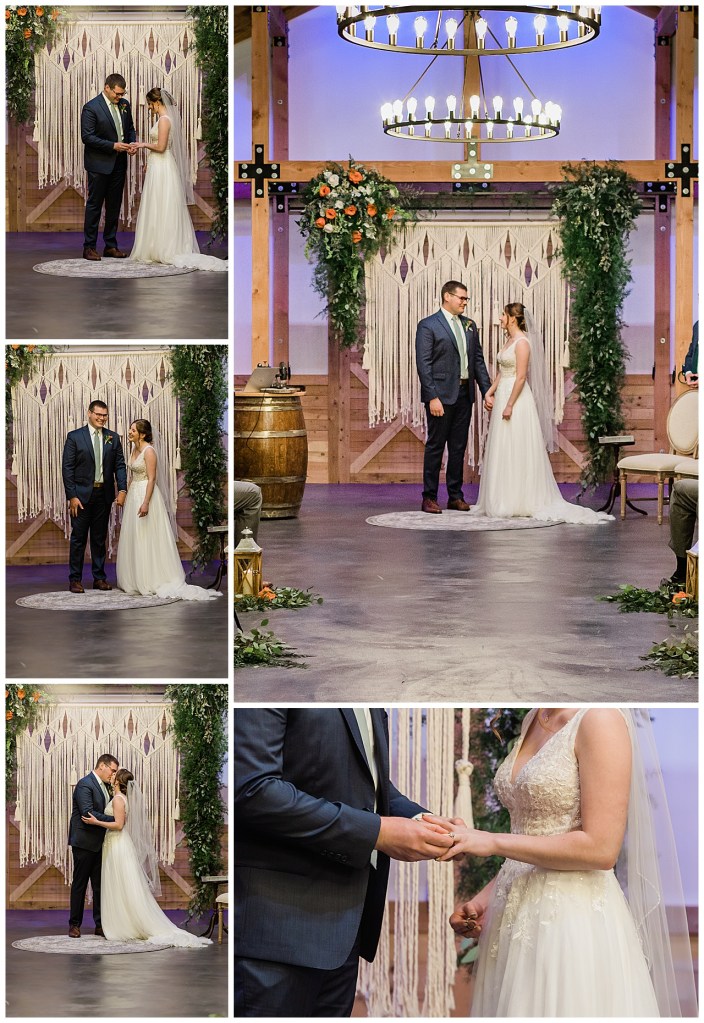 Zooming the wedding was well thought out and very interactive with the venue video and breakout rooms with the bride and groom. This venue has a photo booth and license signing area that is off the charts. This cake was made with pressed flowers on the outside. It was breathtaking and made by the brides sister. The flowers were made my the talented Shana Vallimont. She blows my mind. And that macramé backdrop was made by @fibersbyren. She is beyond. Check out that talent. Wow!